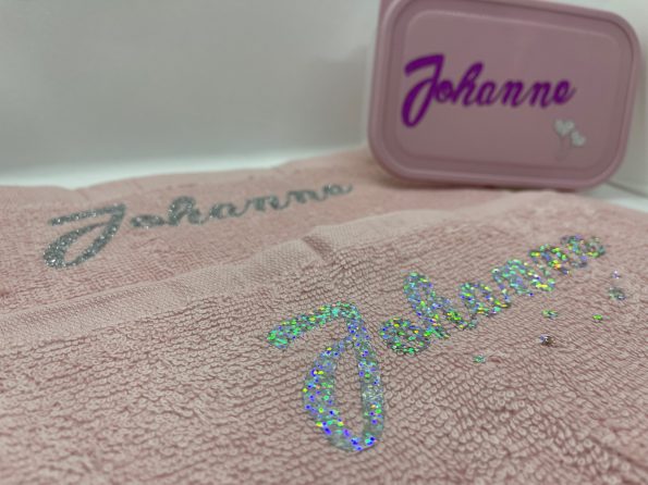 Asciugamano 30×50 personalizzato in spugna di cotone con stampa in vinile.