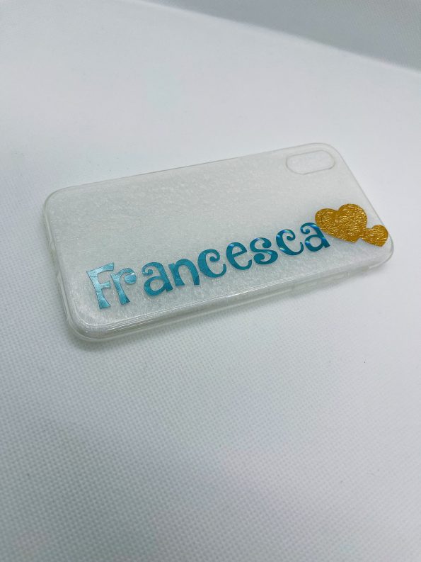 La Scelta del colore si intende per tutto il nome, la cover è trasparente a patto che il colore venga comunicato.