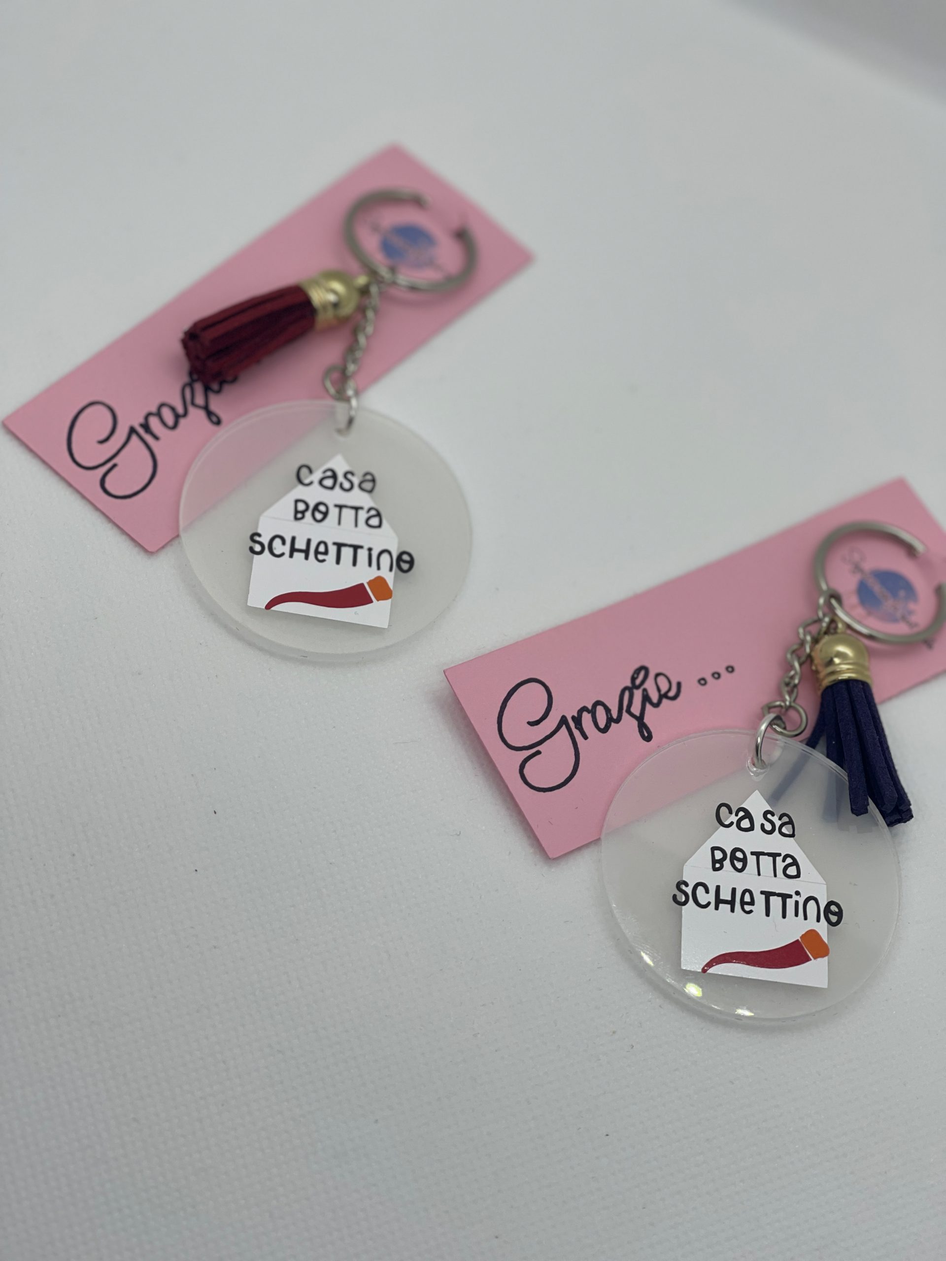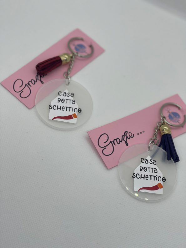 Portachiavi in plexiglass personalizzato con stampa in vinile.