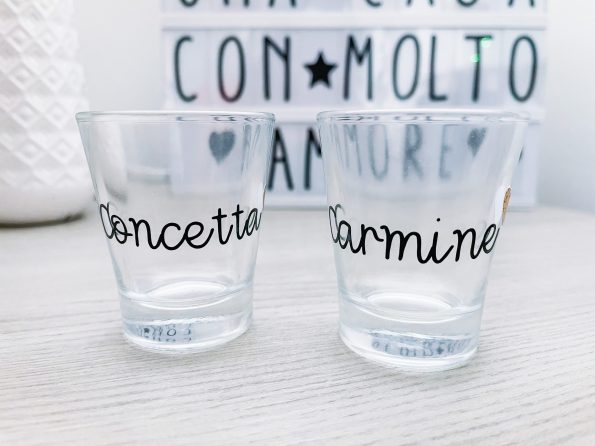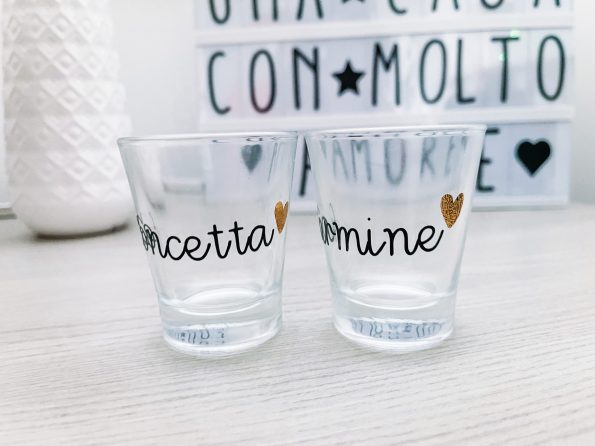 Bicchierini shot personalizzato in vetro con stampa in vinile.