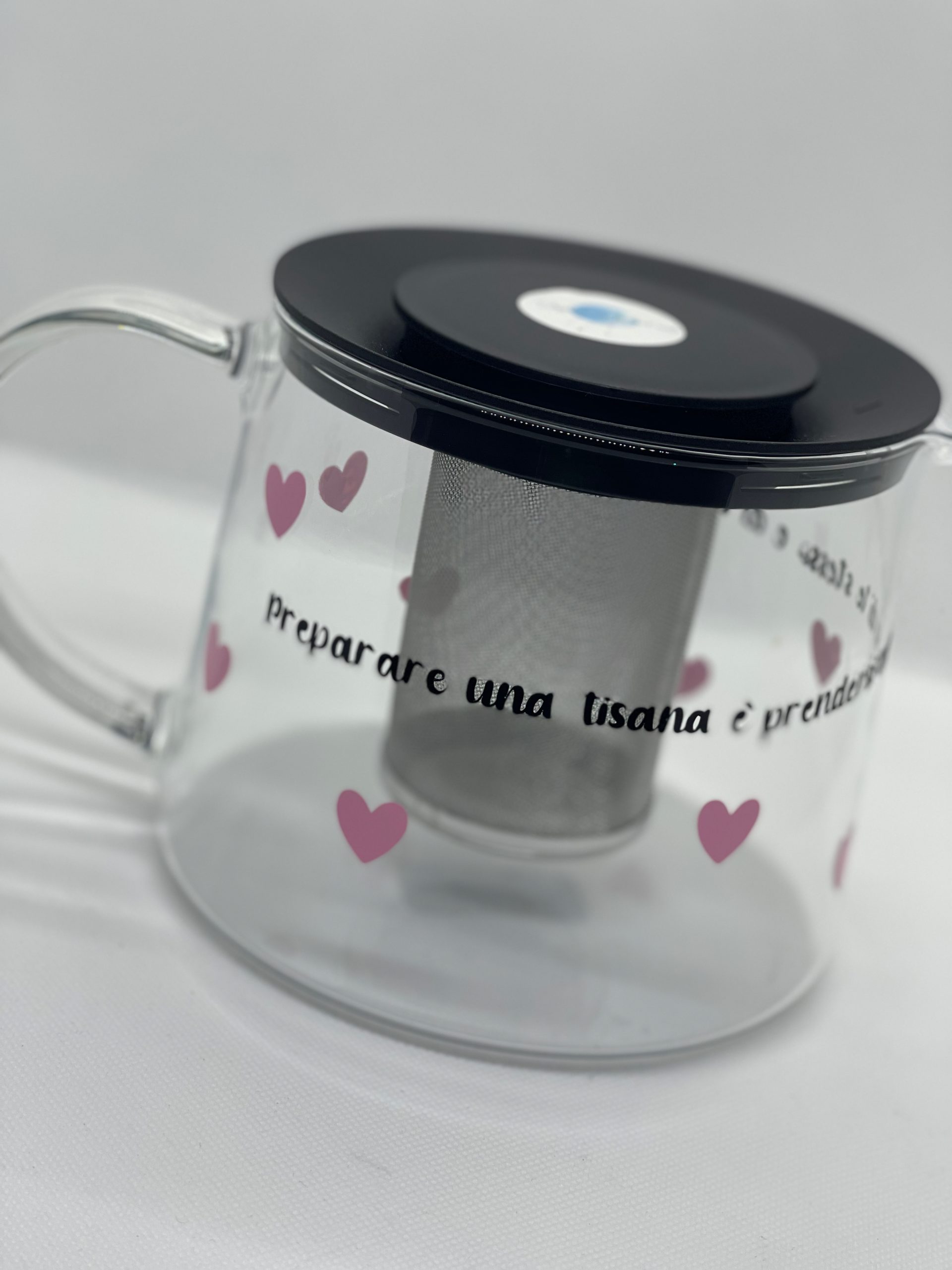 Tisaniera in vetro con stampa in vinile, disponibile sono in nero.